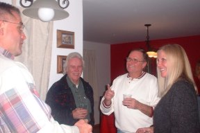 Saturday, December 8, the 2nd Annual Wine Tasting Party at Bill & Julie Robinson's home took place. The turnout was smaller than expected, but those who ventured out had a great time. Wines from around the world were present and none was wasted. Thanks to Bruce for keeping up the tradition of bringing a bottle of gawdawful Boone's Farm. The food was wonderful with superb cheeses and fabulous munchies. Below, a couple of snaps from the evening.